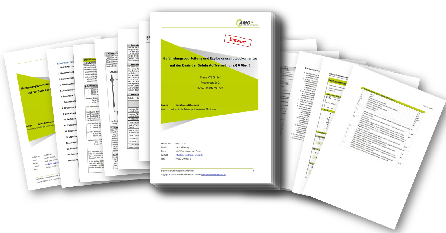 - auf Anfrage ein Muster-Explosionsschutzdokument mit wichtigen Textbausteinen, das als klare Strukturhilfe und praxisnahe Orientierung genutzt werden kann.